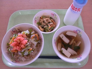 10月27日(木)は、中学生が考えた「体力アップメニューコンテスト」のメニュー第2弾で、今年の最優秀作品が給食に登場しました。