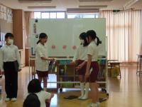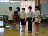 6月4日(火)昼休みの時間に、前期課程の児童が『なかよし集会』を開きました。5年生が集会の進行をし、①「相手を知る」活動と②「缶バッジ」のデザイン募集についての説明がありました。①では、10項目お題のある用紙を各グループに配り、アド・ジャンケンをして、その番号のお題について話し合うという活動でした。話し合いからお互いを知ることで、いじめ予防につなげる取組でした。