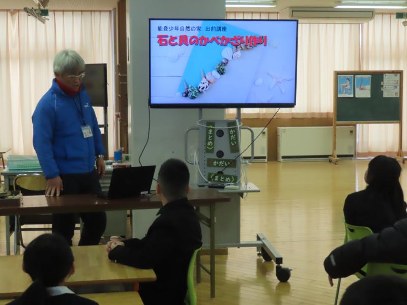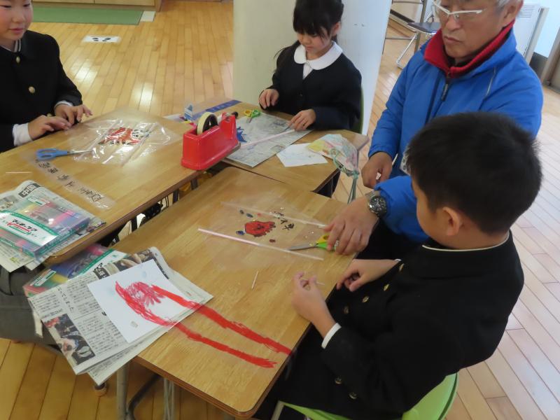 1月20日(火)、能登少年自然の家の出前講座で壁飾り作りと凧作りをしました。指導員の方2名が来てくださり、材料の貝のことや凧の由来や仕組みについて分かりやすく教えてくださいました。材料の貝がいろいろあり、選ぶことも楽しんでいました。凧作りは、ひもを結ぶことが難しいようでしたが、助けていただきながら、粘り強く取り組んでいました。できあがった凧をはやくあげたいと言っている子もいました。とても楽しい時間となりました。たくさんの材料や道具などを準備していただき、ありがとうございました。