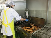 (揚げパンは1つずつ、調理員さんが揚げて、きな粉をつけてくれます)