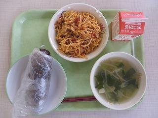 ココア揚げパン スパゲティミートソース レタススープ 牛乳
