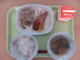 白ごはん チンジャオロース 大学いも みそ汁 牛乳