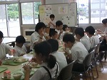 この日の献立の構成は、7年生のアイデアも盛り込まれており、中学生が力をあわせて考えた1食になりました。