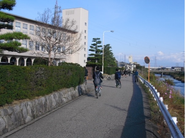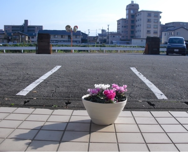 今日は「小春日和」の暖かな一日です。シクラメンの花も大きく背伸びするかのように気持ちよく朝の光を浴びています。登校する生徒の足取りも軽やか、学校のすぐ前を流れる伏見川のカモの一家も波紋を楽しむかのように戯れています。