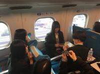 もてなしドームに集まったときは今日が修学旅行っていう実感がまったくなかった。だけど、新幹線が発車した瞬間、「はじまったんや…!」って感じてめっちゃワクワク♪してきた。