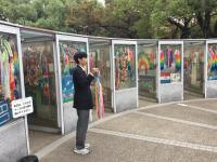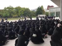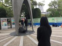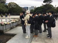 広島平和記念公園でクラス写真撮影、平和資料館見学、ガイド誘導にて公園内平和学習、