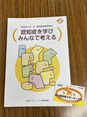 講座受講後、認知症サポーターとして認定され、「認知症サポーターカード」が配られました。