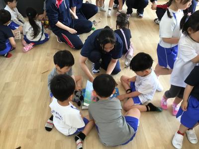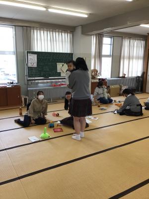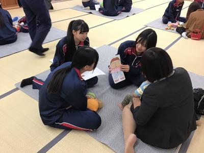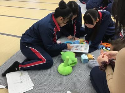 手遊びや絵本の読み聞かせの仕方についても教えてくださり、実際に手遊びをした生徒たちは恥ずかしそうでありながらも自然に笑みがこぼれ、楽しそうでした興奮・ヤッター!