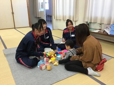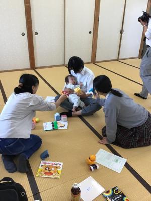 赤ちゃんとおもちゃで遊んだり、絵本を読んであげたり、抱っこさせてもらったりと、赤ちゃんとのふれあいをこころゆくまで楽しみました。