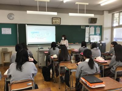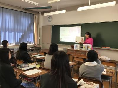 山田先生は保育士経験もある方で、先生の語り口からは、幼児の生き生きと楽しそうな様子が想像でき、生徒たちは実習がますます楽しみになったようです。