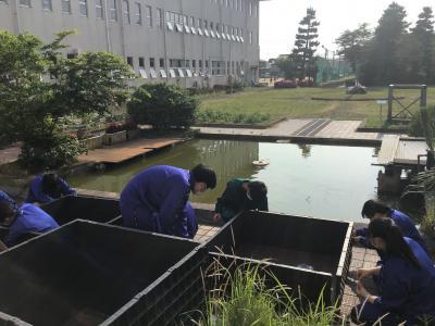 夏休みの園芸部活動は、畑の土壌改良と花壇づくりです。