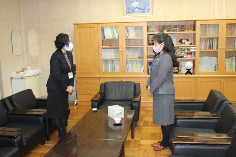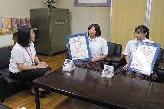 左から、北村幸恵校長、2年 木村 巴さん 2年 藤浜 李帆さん