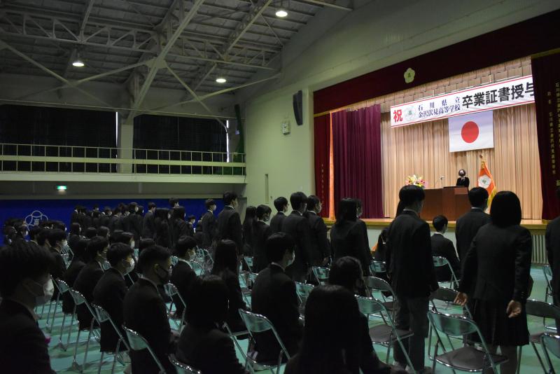 3月4日(火)卒業式がありました。学校長から「金沢伏見高校で過ごした日々で学んだことの中には、世の中の急速な変化のために、何年か経つうちに役に立たなくなってしまうものもあるでしょう。しかし、それを学ぶ過程において身につけた新しいことを学ぶ力はずっと役に立ちます」というお話がありました。伏見高校で学んだ日々を忘れず、卒業後も皆さんが思い描く理想の自分に向かって一歩一歩着実に歩んでくれることを教職員一同、心より願っています。