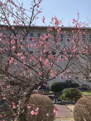 下左:フゲンゾウ(サトザクラの仲間) 八重の桜は一重より遅く咲く。 右:紅梅(桜より早い)