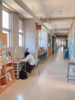 3階 進路指導室前のスペースを利用して自ら学習する生徒たち