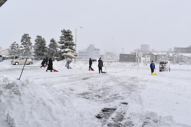 職員総出の作業で駐車場の雪はかなり少なくなりました。