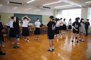 (生徒と職員が一緒のグループを作り、実技を行ないました)