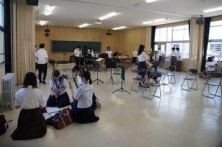 指揮者体験では、吹奏楽部1年生の山部琉羽葵さんが