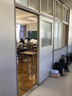 考査を受ける生徒たち ムクゲの花も咲きだしました