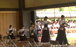 また、弓は、学校にあるものを使います。弓道着、矢など個人で使うものは購入します。