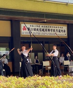新潟県上越市の謙信公武道館(新潟県立武道館)で行われた北信越高等学校弓道新人大会に