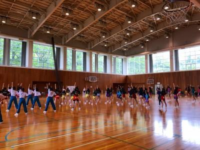 4月22日(土)、本校の武道場にて、金沢チアリーディングジュニアクラブの7名をお招きし、合同練習を行いました。新入生もさっそく一緒に練習に取り組みました。6月の北信越選手権大会に向け、しっかり練習を積み重ねていきます。