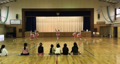 米泉小学校体育館で行われた、子供たちとのチアリーディング交流会に参加しました。