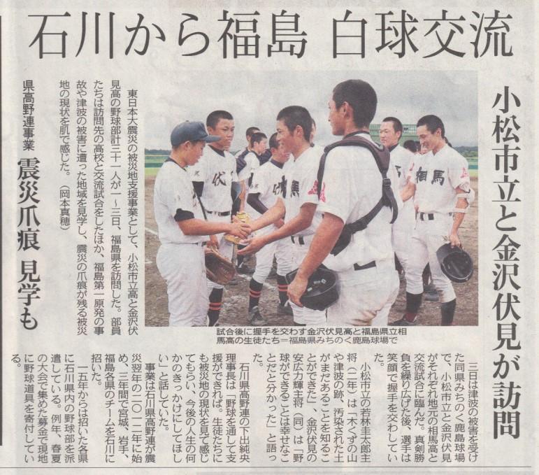 【野球部】福島県訪問 「北陸中日新聞社提供」