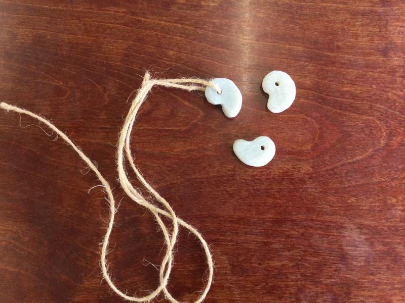 生徒はそれぞれの形の勾玉をつくり、仕上げにヒモを通しました。