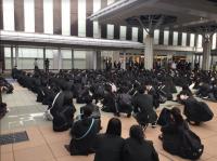 金沢駅に集合し、広島に向けて笑顔で出発しました。