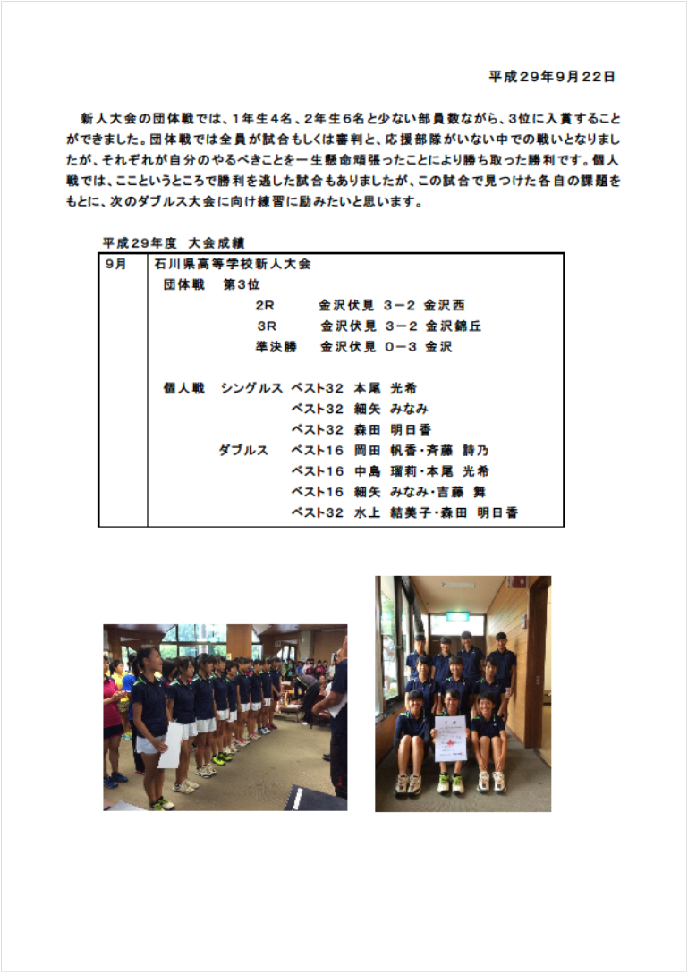 そのような状況で臨んだ金沢地区大会・新人大会では、目標達成することはできませんでしたが、練習の成果を発揮することはできたと思います。