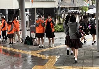 学校の玄関、西金沢駅前、泉本町の交差点の3か所で