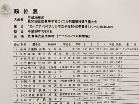 ファイナルの末、大会成績は、10mエアライフル少年女子立射競技3位でした。