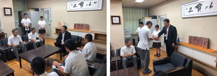 7月16日(日)第99回全国高等学校野球選手権石川大会1回戦が金沢市民野球場で行われ、輪島高校との対戦結果を主将以下4人が校長先生に報告しました。