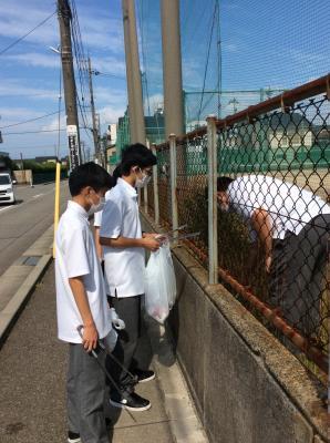 2学期中間考査が終了した秋晴れの下、学校周辺のゴミ拾いを1時間行いました。
