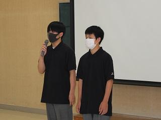 代表をして副会長の豊田さんが「生徒や先生がた皆さんの期待に応えられるようにがんばりたい」と