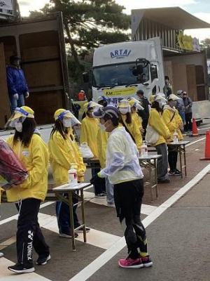本校からは約30名の生徒が、マラソンランナーの手荷物預かりのお手伝いをしました。