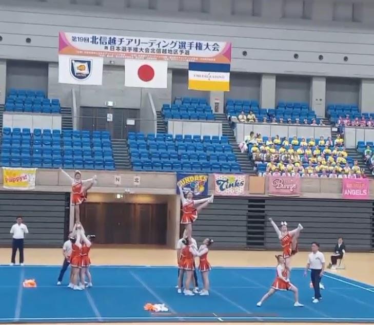 5月26日(日)に『小松大谷高校チアリーディング部』さんと、『きらきらkids』さんにお越しいただき、合同練習会と発表会をさせていただきました。1週間後に富山市総合体育館で開催される『第19回北信越チアリーディング選手権大会』にむけ、とても有意義な練習をすることができました。遠路お越しいただき、貴重な経験を積ませていただきましたことに感謝を申し上げますとともに、3チームともに北信越大会で素晴らしい演技ができることを願っております。