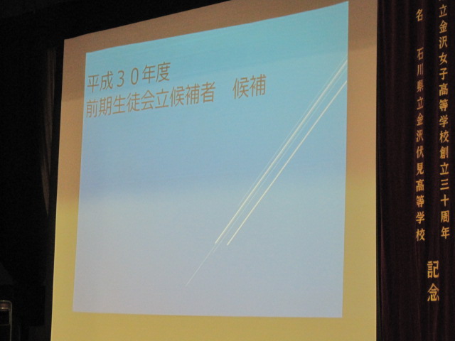 生徒会執行部の司会・進行により、受賞代表者が全校生徒に報告しました。