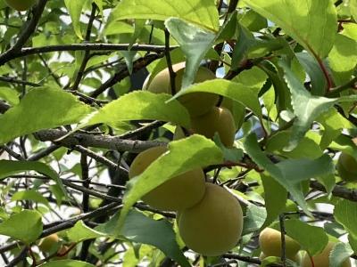 梅雨の語源ともいわれる梅の実が中庭で色づいてきました。