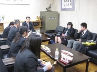4月20日(木)昼休み、校長先生、副校長先生、部長5人(野球部、バレーボール部、女子サッカー部、男子バスケットボール部、テニス部(女子))で昼食をともにしながら、校長室で意見交換会を行いました。この部長との意見交換会は、28日(金)まで計6回、すべての部長を対象に行われる予定です。