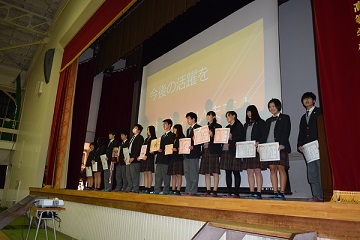 2学期に行われた、部活動などの各大会上位入賞の受賞報告会を行いました。