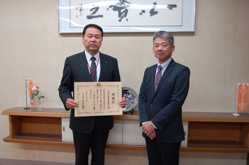 毎年応募しており、このほど金沢税務署長の白川敏郎様が本校を