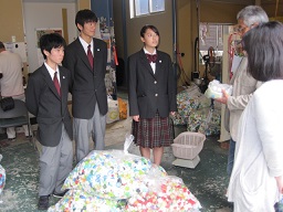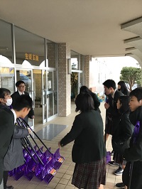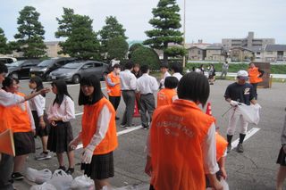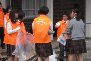 参加したのは、陸上部、バレーボール部、女子サッカー部、弓道部、ソフトテニス部、テニス部、フェンシング部、野球部、チアリーディング部、少林寺拳法部、演劇部、美術部、書道部、吹奏楽部、筝曲部、JRC、家庭同好会、園芸、生徒会、校風委員の生徒たちと職員の約250名です。
