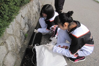 | 校地周辺の排水溝にあるゴミを拾います。 |