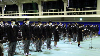 新型コロナまん延防止のため、前日の各種表彰及び予行練習は中止、同窓会入会式は規模を縮小して行われました。