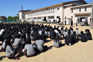 瀬川さんは生徒たちを前に当時の積極的な行動に対し、感謝の気持ちを涙ながらに伝えられました。生徒たちは自分たちの行いがこれほどにも感謝されることに対し、やや驚きながらも瀬川さんのお話にしっかりと耳を傾け、当時を振り返っていました。