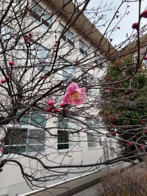 耐雪梅花麗(雪に耐えて梅花麗し)・・・紅梅咲く