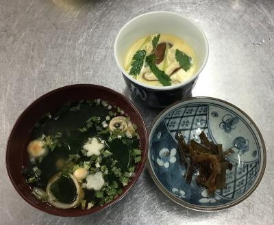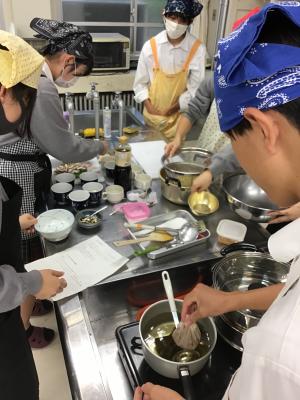 茶碗蒸しは昆布とかつおぶしの旨味でとっても美味しく、感動していた生徒たちでした。