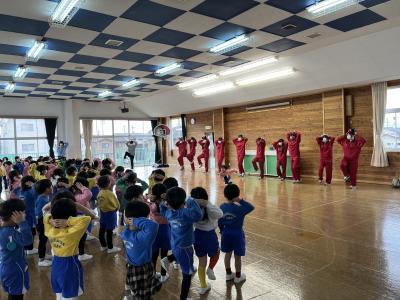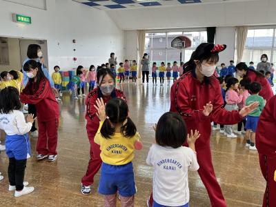 「ジャンボリーミッキー」「ミッキーマウス体操」を園児たちと一緒に踊りました。